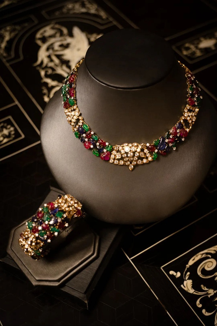 卡地亚“Tutti Frutti”项链和手链套装,1950,由LUEUR璐迩珠宝提供