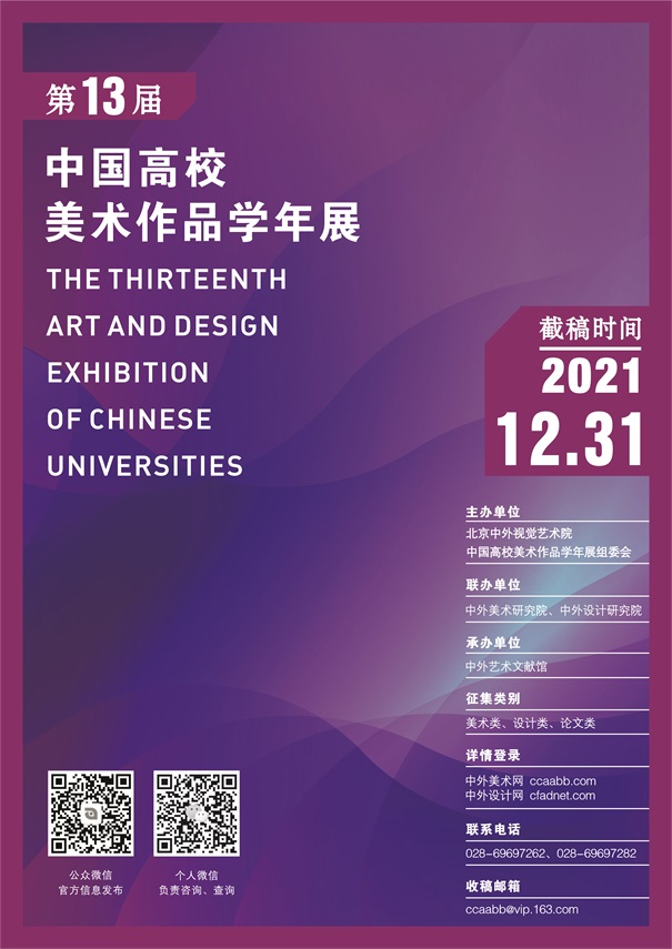 中国高校美术作品学年展自2009年创办以来,历经十二年品格砥砺,涌现万千精品佳作,现已成为高等院校艺术教育改革的重要组成部分。学年展的成功创办与逐年推进,对高等院校美术与设计教育的发展产生着重要的现实意义。第十三届中国高校美术作品学年展大型艺术活动已于2021年9月在中国成都正式启动,由北京中外视觉艺术院、中外美术研究院与中外设计研究院联合举办的第十三届中国高校美术作品学年展,必将又是一场全国高校艺术师生思想碰撞与多元互动的艺术盛会。