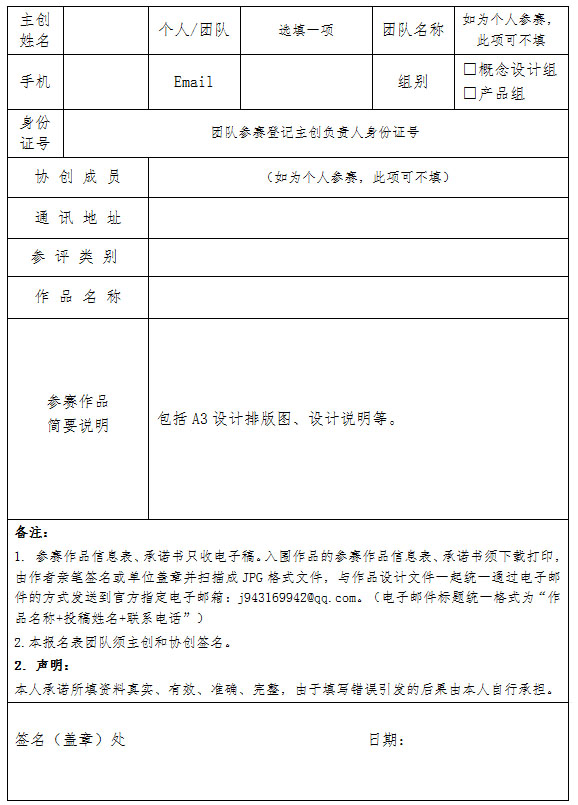 备注:入围作品需要另外提交《参赛作品报名信息表》与《作品知识产权承诺函》到邮箱943169942@qq.com。