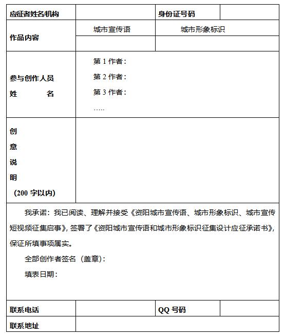 资阳城市宣传语和城市形象标识征集活动报名表