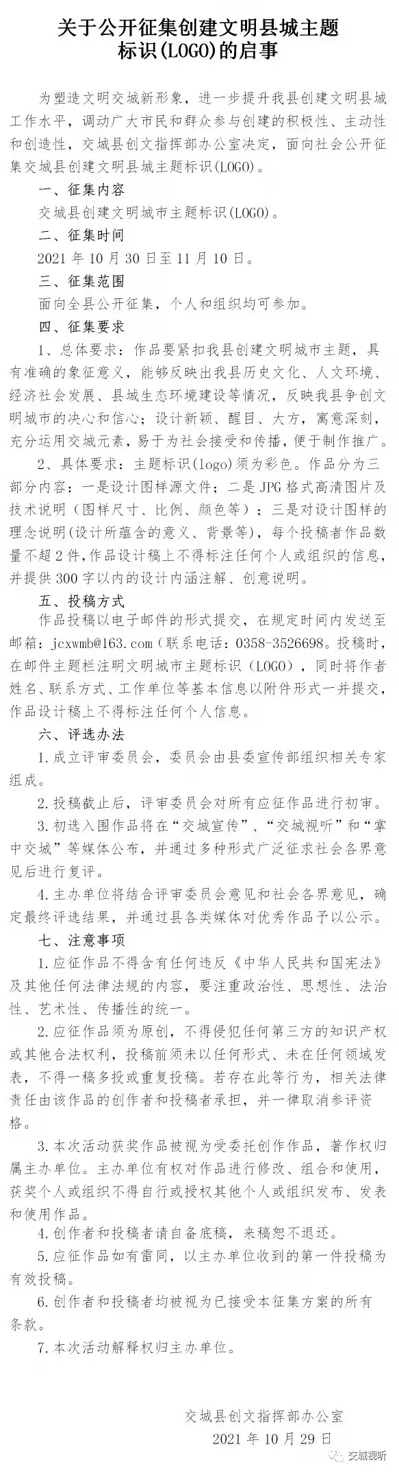 交城县征集创建文明县城主题标识(LOGO)