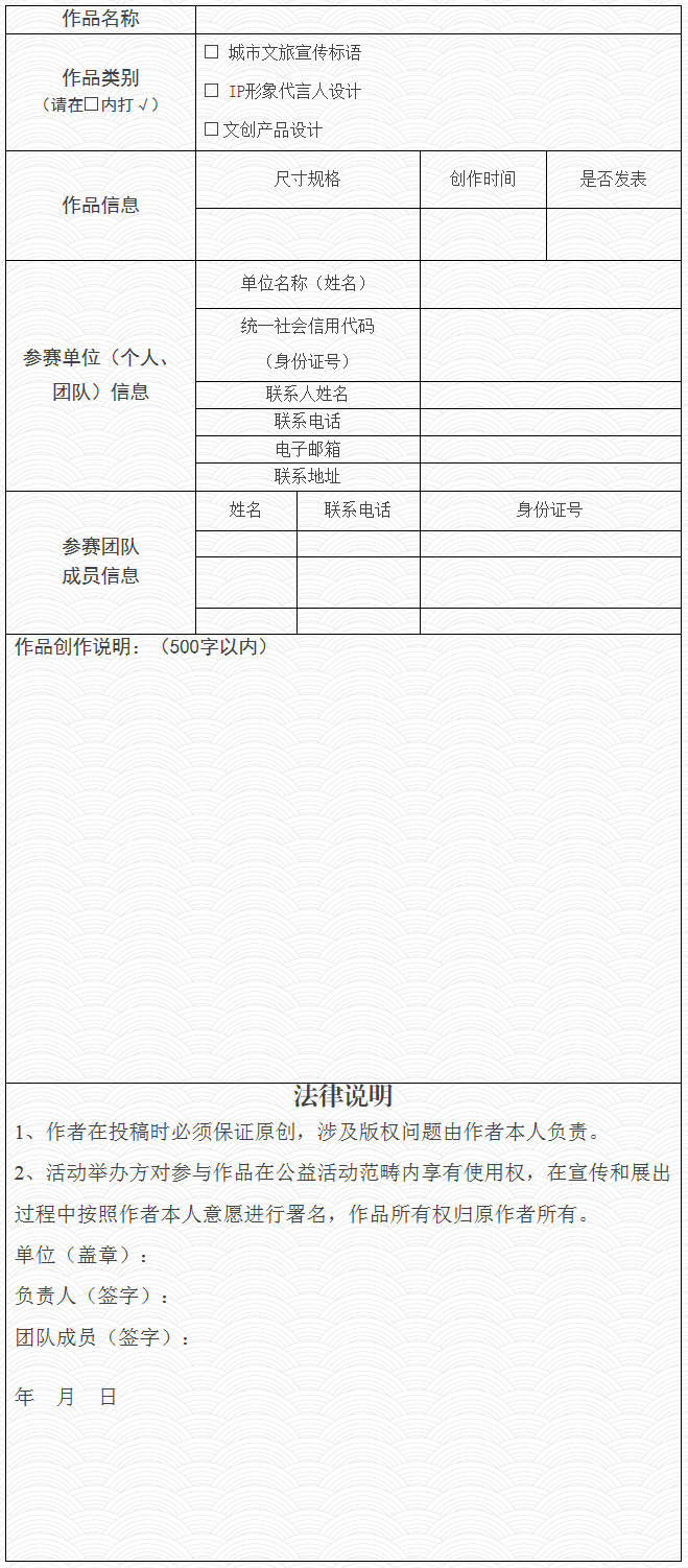 附件:新乡市文旅IP创意设计大赛参赛作品登记表