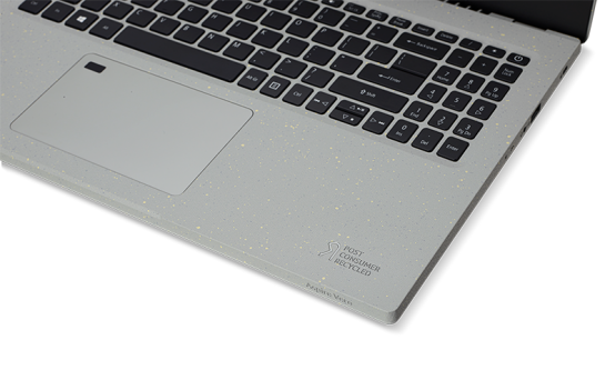 Aspire Vero是Earthion平台之下推出的第一款产品,其机身及键盘键帽均采用回收塑料材质打造,A面和D面则由30% PCR组成,随机的包装填充物、盒子则80%-85%为再生纸浆,电脑包则是100%再生塑料制成。