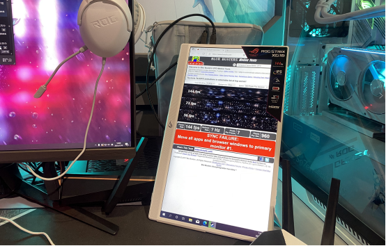 而雪舞战姬解决方案中所使用的ROG Strix XG16AHPE-W这款电竞便携显示器,则是采用了15.6英寸的IPS面板设计,支持电竞级的144Hz疾速刷新率,搭配G-SYNC兼容技术,提供顺畅不卡顿的游戏体验。内置7800mAh大容量电池,采用折叠式支架设计,轻松畅玩持续娱乐。接口方面配备了USB-C接口和Micro-HDMI接口,可连接多种终端设备,畅玩游戏,娱乐影音都是出门在外必备的便携电竞神器。