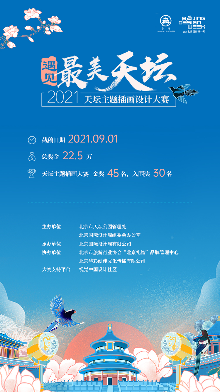 总奖金22.5万元,天坛主题插画大赛金奖总名额45名,入围奖30名。