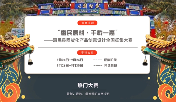 2021“惠民原耕·千载一惠”——山东省惠民县网货化产品创意设计全国征集大赛报名进行中...猪八戒网对外宣传本次大赛的口号是:打破传统,开放合作;创意共享,全球借脑;
