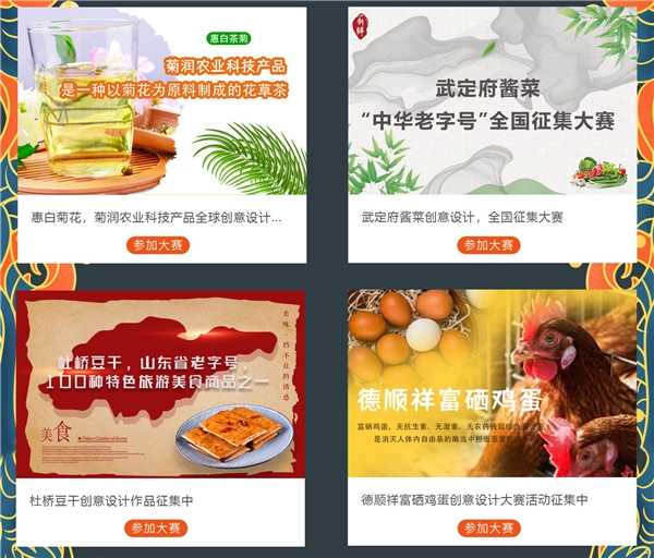 据报道,近日由山东惠民县数字乡村建设工作专班举办的“惠民原耕·千载一惠”——网货化产品创意设计全国征集大赛正在八戒网如火如荼的展开。