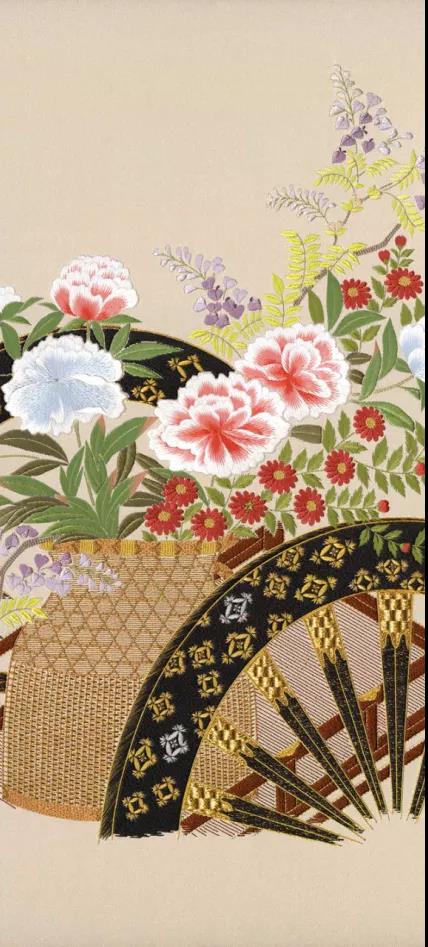 帯‘花车’/ 小屏风‘花献上’/ 黑留袖 ‘兴福院袱紗图案’
