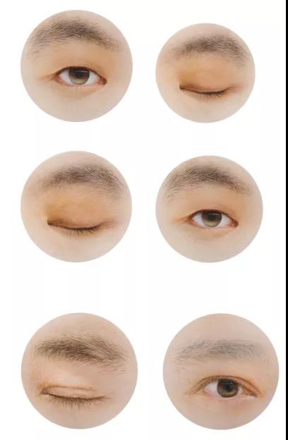 五双眼睛,正反两面分别为张开和闭上的眼睛。在程控电基的驱动下不断地上下翻转,正反两面分别快速地呈现在观众面前。形成不断眨眼的效果。在幽暗的背景中,这五双眼睛,就是世界上所有的人的眼睛。当人们靠近时,红外感应系统侦测到人体,运动停止。苏绣的精美绝伦,毫发毕现。