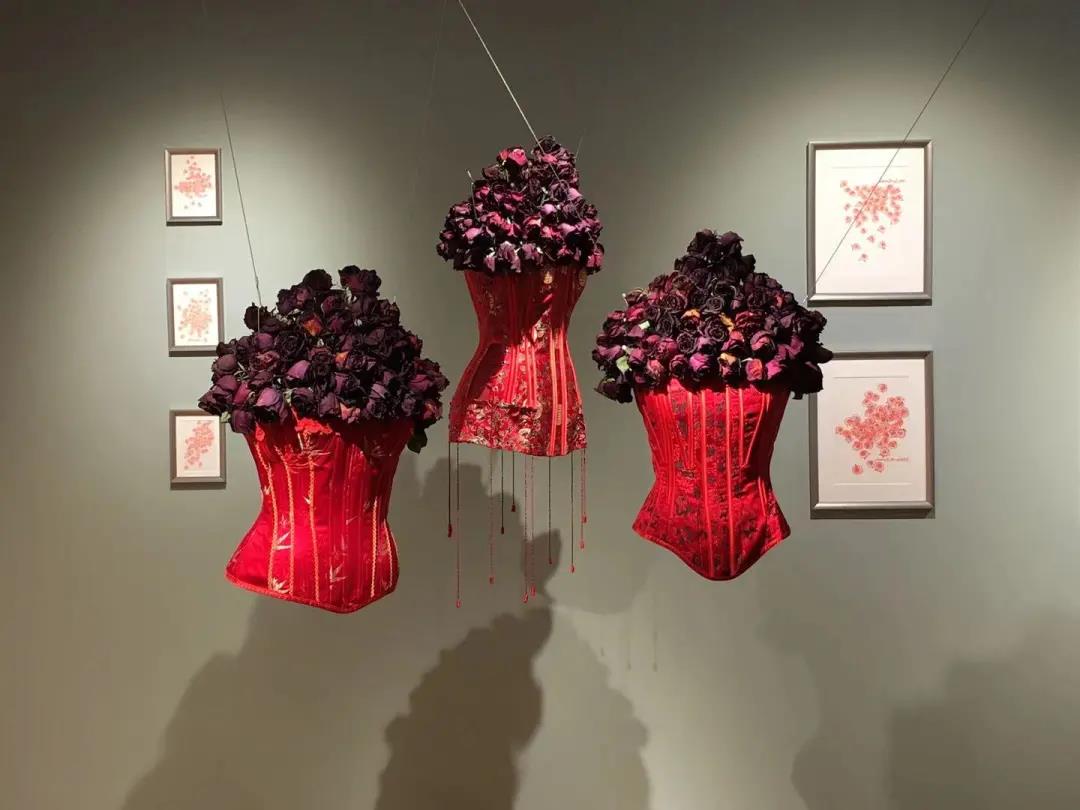 在展览中,辅以百朵玫瑰,在相得益彰的碰撞中,服装伴随鲜花盛开凋零的流逝过程,也见证了记忆与现实在这手艺与身体中形成的中和,同时也强调中国传统纺织文化的博大精深。