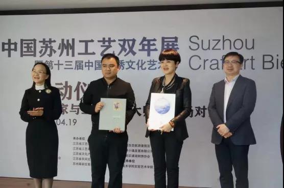 2021年4月9日,苏州市高新区镇湖镇进行了苏州工艺双年展启动了第一次项目,艺术家代表和工艺美术大师进行了一对一的结对仪式。15名当代艺术家与15名刺绣大师进行合作创作。在此项目中,苏绣的传承与发展与当代艺术互促互进,共同完成当代中国传统工艺的当代创新。