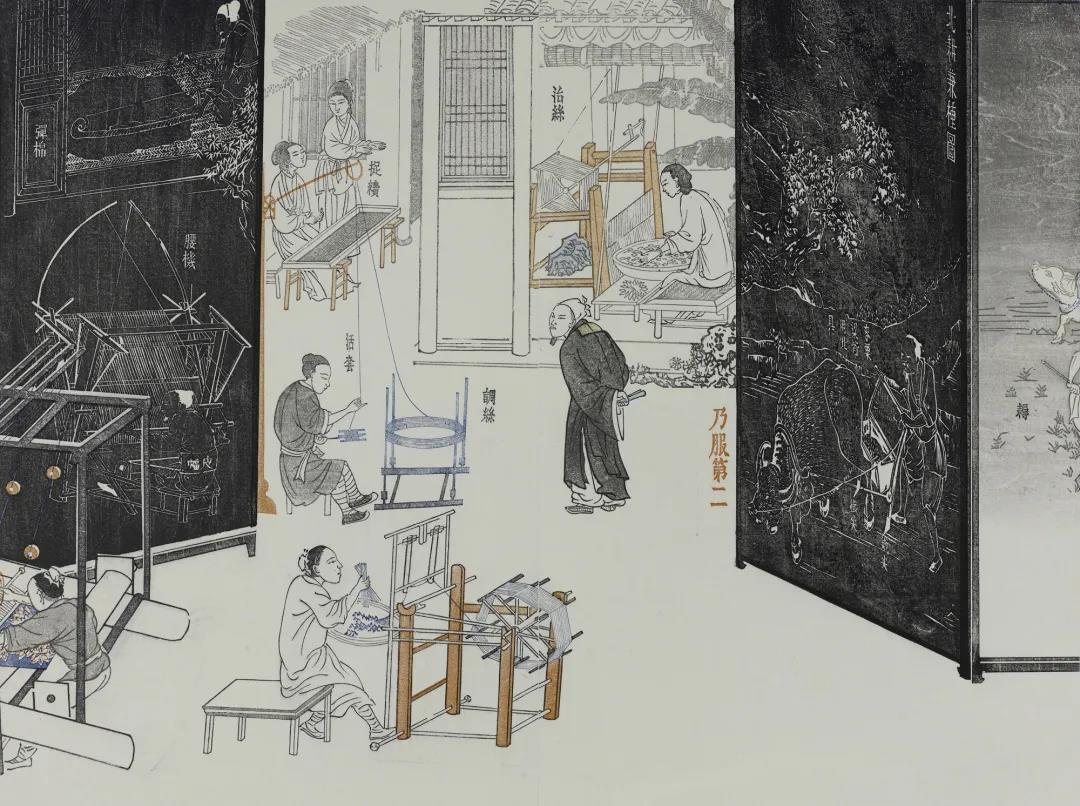 屏风是古代中国人的日常生活之器,而屏风上的山水世界却是中国人构建的一个与其现实世界并行的理想世界,是古代中国人“卧游畅神”的精神载体,以屏风形成本幅历史画的画面空间分割。中国美术学院教授曹晓阳的版画作品,以三卷《天工开物》中的插图与主要论述分布其中,并包含宋应星未刊刻其中的关于天文、音律的研究,共同构成画面的主题叙事结构。而由屏风分割出的错落空间,则以“天工开物”卷序开始,展现宋应星为著作“天工开物”所展开的实地考察、思考研究、著录、刊刻等情节。此园林式的可游可居的空间关系,既是宋应星那个时代的生活现场,也是其理想游历其间的精神世界。这种对穿行于虚实之间的理想者的再现,即是本幅历史画卷围绕其展开的主体叙事结构。