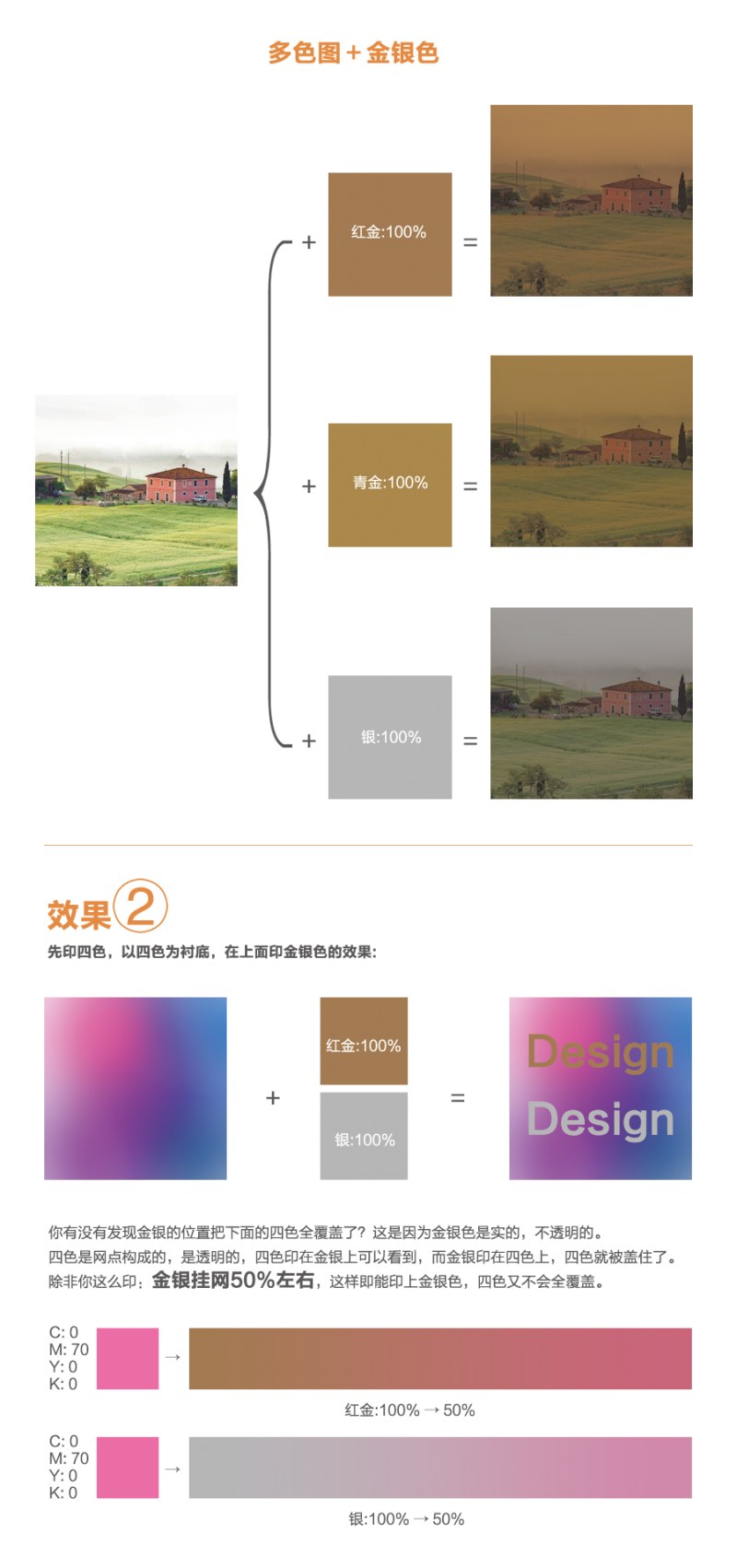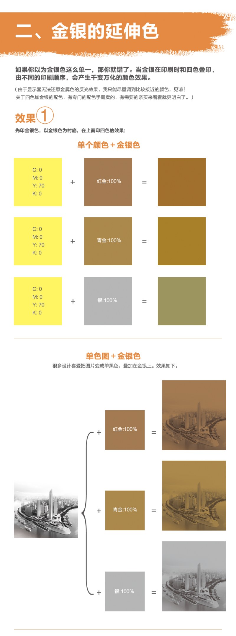 中需要经常遇到一些专色,有时利用专色印刷后的印品,效果非常棒。但是一般印刷是四色,需要印品表现出金银色时,怎么办呢?不要急,看下面给你解决之道。